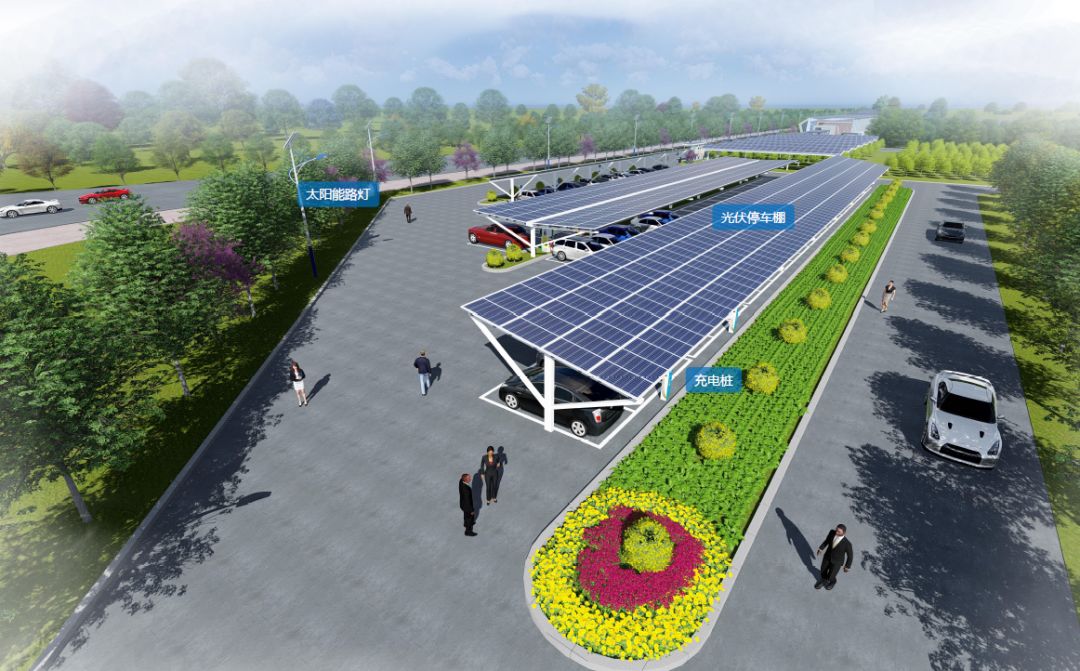光伏车棚可以参与自发自用、余电上网,也可以与储能、充电桩、新能源电动汽车相结合为光储充车棚一体化系统,经太阳能光伏组件所发电量通过充电装置储存到蓄电池中或直接供给电动车充电使用。