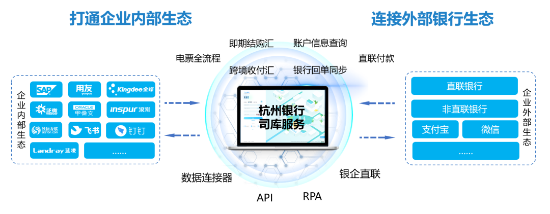 杭州银行司库服务通过“金融+科技+生态”三轮驱动,助力企业实现从“数据孤岛”到“业财协同”的跨越式升级: