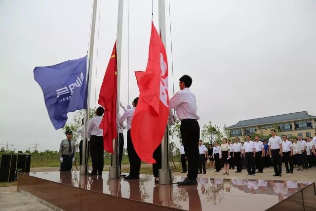 上午8时40分,威胜控股董事会吉主席、威胜控股本部领导、电气董事会成员、及电气全体同仁齐聚升旗广场。
