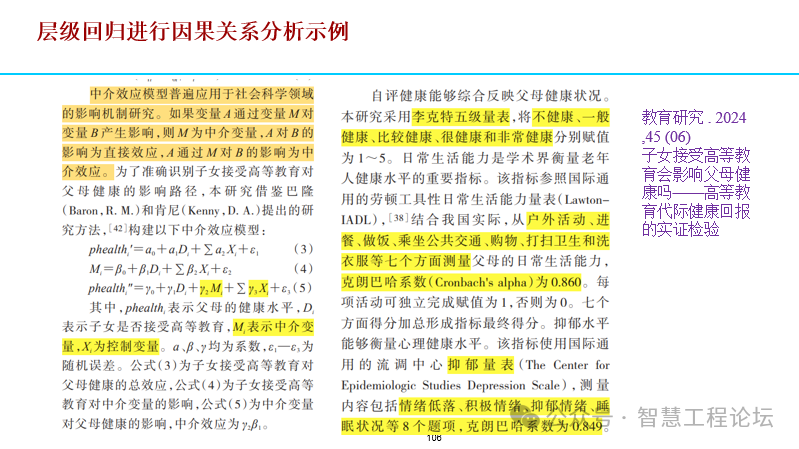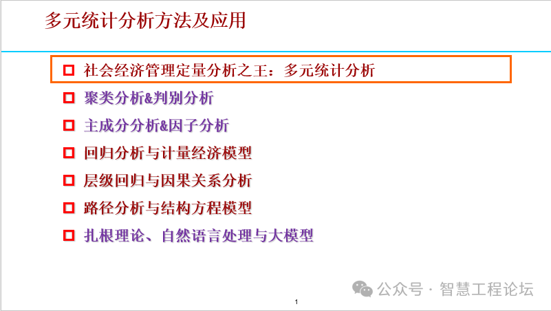首先,樊重俊教授为大家介绍了多元统计分析的方法类型,主要有聚类分析&判别分析、主成分分析&因子分析、回归分析与计量经济模型、层级回归与因果关系分析、路径分析与结构方程模型和扎根理论、自然语言处理与大模型。通过樊教授的讲座,大家了解到以上科学研究方法在学术研究中的重要地位,为大家理解复杂数据提供了科学且有效的路径。若能将这些科学研究方法巧妙地运用于思想政治教育研究与实践中,不仅会有力地推动思想政治教育研究朝着科学化和数据化迈进,还能为思想政治
