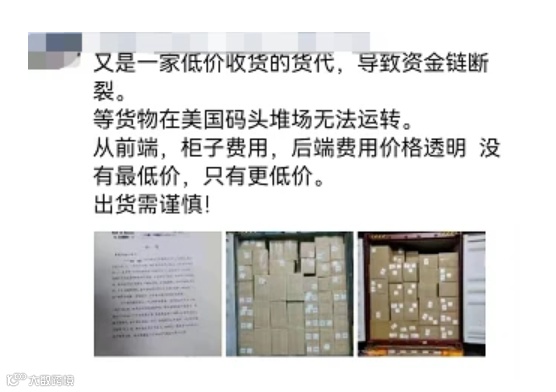 更有其它货代公司采用低价收货的方式,低利润接收货代业务,结果暴雷。