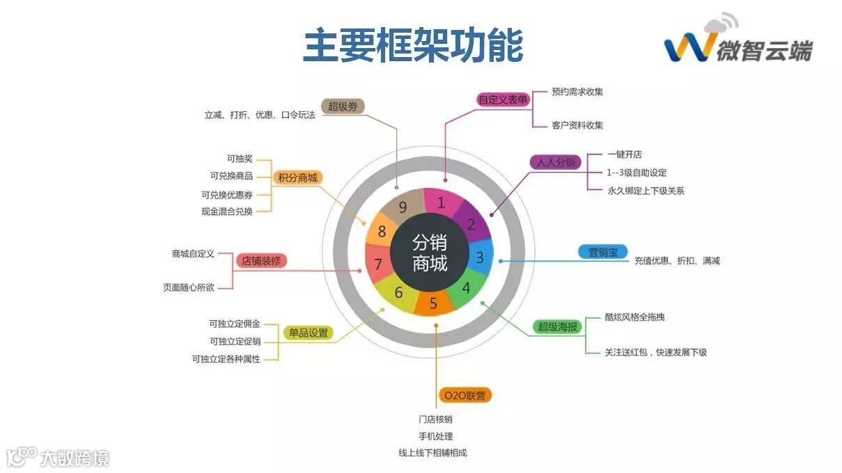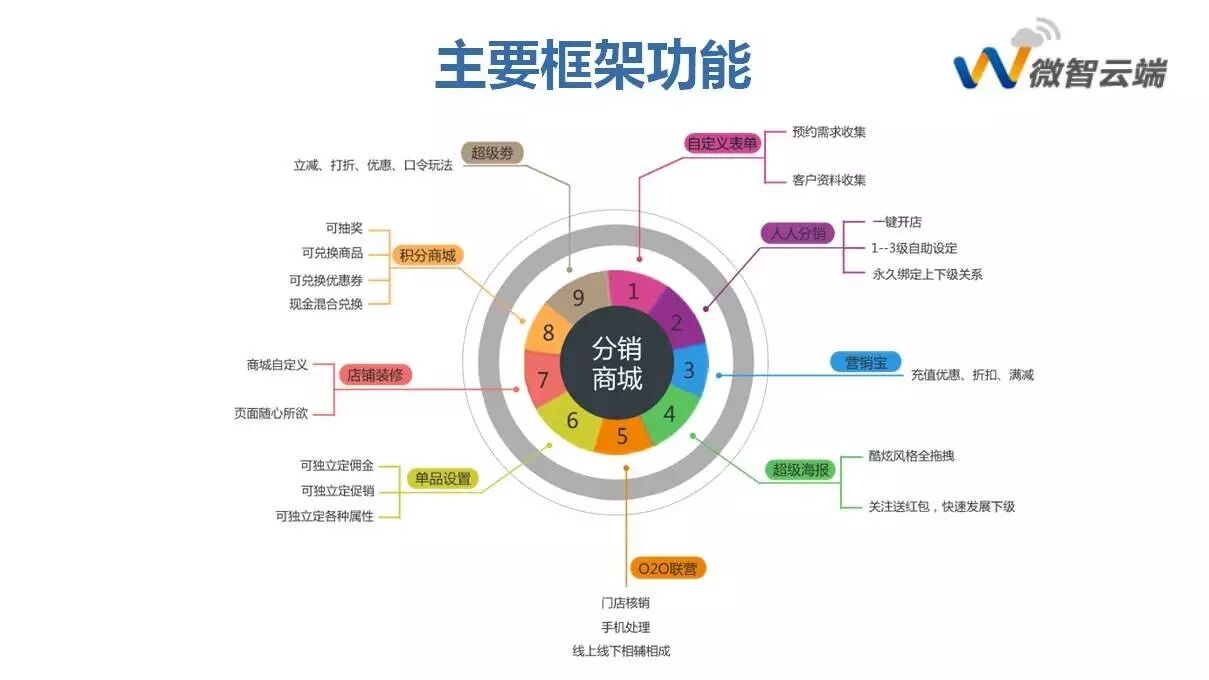 从注册公众号、商城搭建到商城装修,微智云端为商户搭建了一个完整的移动社交电商平台,除了订单、物流、仓储的管理系统,还配置了多种互动营销工具,打造完美闭环。