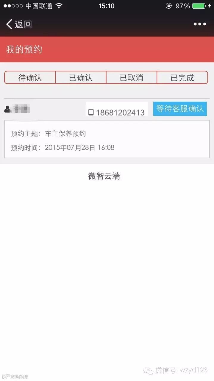 7、手机端管理:客户提交预约,模板消息通知客服,客服点击模板消息去到手机端管理页面,对预约进行确认、拒绝、更改预约时间、添加答复。