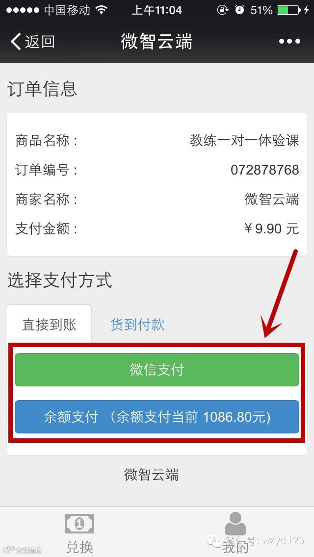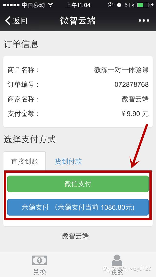 1、在线支付:微信钱包支付或者会员卡余额支付。