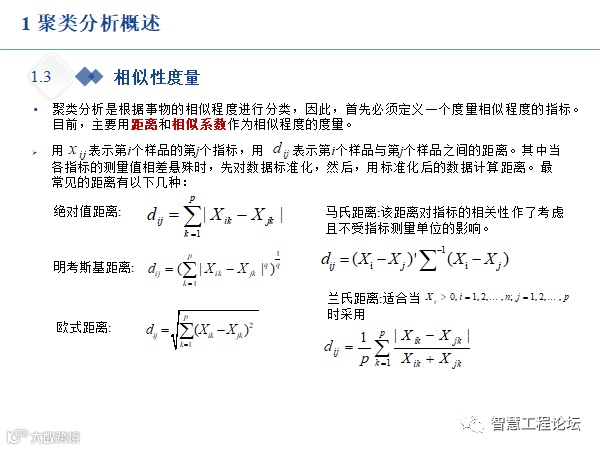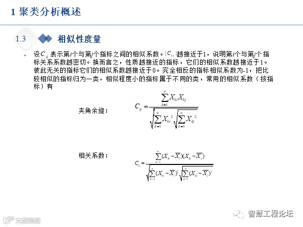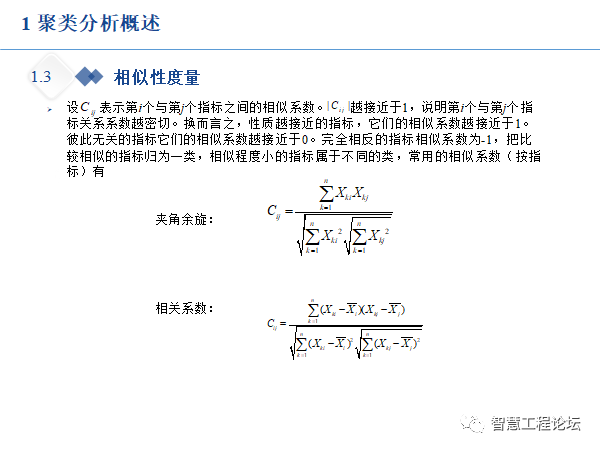 越密切。换而言之,性质越接近的指标,它们的相似系数越接近于1。彼此无关的指标它们的相似系数越接近于0。完全相反的指标相似系数为-1,把比较相似的指标归为一类,相似程度小的指标属于不同的类,常用的相似系数(按指标)有