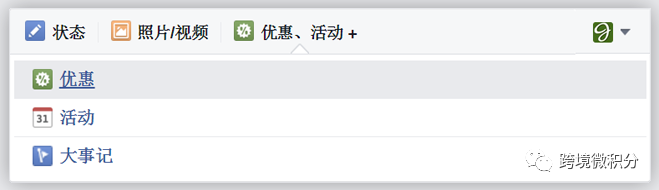 只需点击状态更新字段顶部的“优惠、活动 +”即可创建此类帖子。