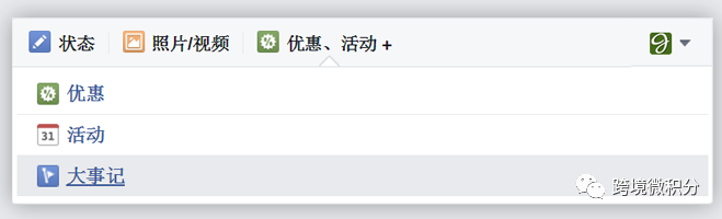 ● 点击“优惠、活动 +”,然后选择“大事记”