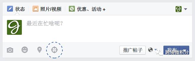 ● 点击地点图标,即可添加自己所在的地点。如果在不同的地点或在活动中发帖,此功能很有用。