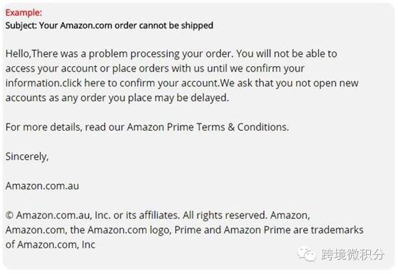 上个月,英国经历了史上最大的一场网上银行钓鱼诈骗,日前,准备开始进行黑五促销的亚马逊,也成为了诈骗犯攻击的对象。 速猫从英国媒体近日的报道中了解到,亚马逊英国站黑五促销于11月14日拉开帷幕,然而英国在线安全小组Action Fraud提醒消费者警惕圣诞购物季的邮件诈骗。 这些诈骗邮件看似来自亚马逊,但Action Fraud提醒消费者不要打开邮件,也不要回复。据了解,这些邮件内容称,由于订单处理出错,无法进行配送,要求消费者点击邮件里的链接进行确认。这些属于钓鱼邮件,目的是为盗取用户的个人和财务信息。 由于亚马逊平台受众广泛,黑五促销正在进行中,预计会有很多下单的买家收到钓鱼邮件,某些消费者稍不注意很有可能成为受害者,损失金钱。 以下为钓鱼邮件示例: