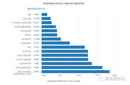 如果任何行业想要保持在社交媒体与受众有积极互动的话,企业就需要以更快的速度回复顾客。报告指出,6个行业的企业会在5个小时内回复顾客。然而,科技类和医疗保健的企业则需要花上15小时才会回复顾客的评论。 值得一提的是,这份报告显示,在三个月的调查时间内,几乎每个行业里都有“很多”企业连一条顾客的@提及都没有回复。 不幸的是,一些企业仍然不能明白社交媒体的重要性,更重要的是,它们也无法得到社交媒体营销的价值。幸运的是,还有很多更懂社媒营销的品牌可供消费者选择。