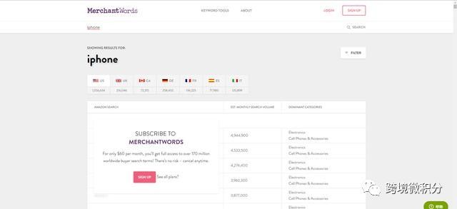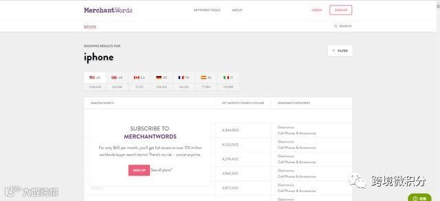 不知道大家选品的时候是否使用到一些工具,我们在选品时会参考一些要素,第一个是市场容量,那么会用的工具是merchantword,是一个能够从亚马逊里面,找到每个关键词搜索量的工具。