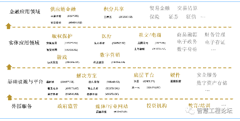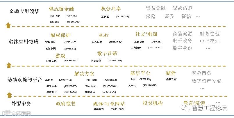 (12)中国,各类上市公司也积极布局区块链领域,从外围服务、基础设施平台、实体应用到金融应用,整条产业链都有涉及(中国部分数据)