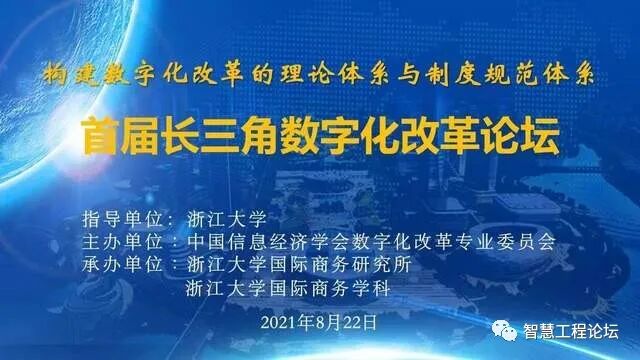中国信息经济学会以打造中国最具影响力、具有国际声誉的信息经济与信息管理研究学术团体为发展愿景,长期致力推动中国信息经济与信息管理两个领域的跨学科理论创新。为推动数字化改革前沿理论和实践创新发展,中国信息经济学会于2021年7月成立了数字化改革专业委员会。为构建数字化改革的理论体系和制度规范体系,通过数字化改革夯实数字长三角的稳固基石,为深入推进长三角一体化战略提供强劲数字动能,中国信息经济学会数字化改革专业委员会联合浙江大学国际商务研究所等机构于2021年8月22日以腾讯会议形式共同举办首届长三角数字化改革论坛。来自政产学界合计近四百余人参会。下届论坛在南京大学举办。