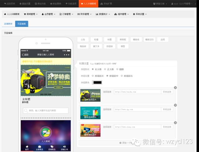 (2)轮播设置,轮播是一个幻灯片首页轮播,可设置多张图片