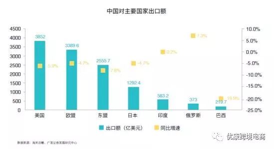报告显示,近年来受劳动力成本上升冲击,中国传统贸易出口增速不断放缓,近年来我国产品主要出口地美国、欧盟、东盟、日本都出现了出口额下滑现象。而与之相对应的,这些地区也是我国跨境出口电商的主要市场,且跨境出口电商在这些市场增长速度非常可观。与传统贸易相比,跨境出口电商竞争力的核心就是效率,这种效率来源于缩减贸易中间环节。