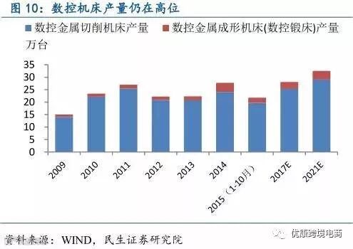 根据中国产业信息网预测,预计我国2017年数控金属切削机床、数控金属成形机床(数控锻压设备)产量将分别达到25.3万台、2.76万台,未来五年(2017-2021)年均复合增长率约分别为3.47%、6.33%。