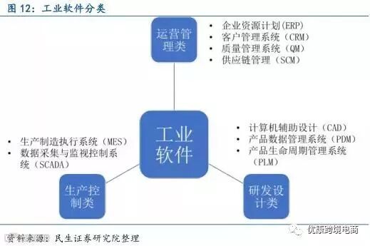 应用软件则能够根据用户需求提供针对性功能,在智能制造流程中,工业软件主要负责从事生产控制、运营管理、研发设计等方面进行优化、仿真、呈现、决策等职能。