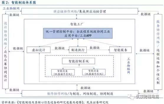 其中智能制造过程是指通过自动化装备及通信技术实现生产自动化,并能够通过各类数据采集技术,以及应用通信互联手段,将数据连接至智能控制系统,并将数据应用于企业统一管理控制平台,从而提供最优化的生产方案、协同制造和设计、个性化定制,最终实现智能化生产。
