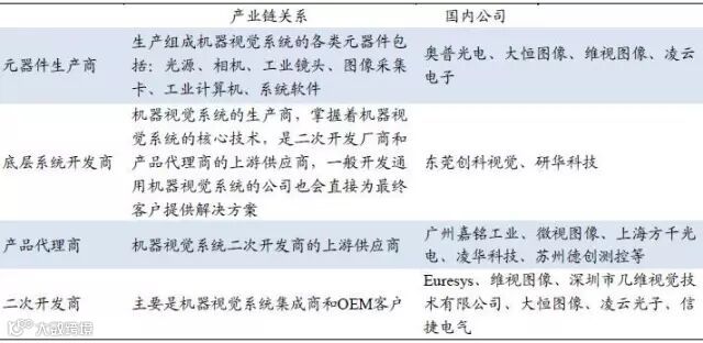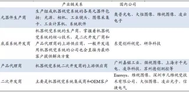 目前活跃在我国机器视觉市场上的力量主要可以分为三类:国际综合自动化工业公司、国际专门机器视觉厂商、国内专门机器视觉公司,其中外资厂商仍然占据机器视觉市场主导地位,我国机器视觉行业企业以产品代理商和系统集成及设备制造为主,底层开发商较少。
