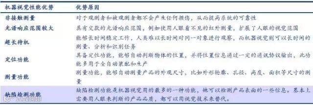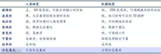 如果说工业机器人是人类手的延伸、交通工具是人类腿的延伸,那么机器视觉就相当于人类视觉在机器上的延伸。机器视觉实现了对工件尺寸、形状、颜色等特征的自动判断和识别,可以让机器代替人眼做测量和判断,是实现工业自动化和智能化的必要手段。