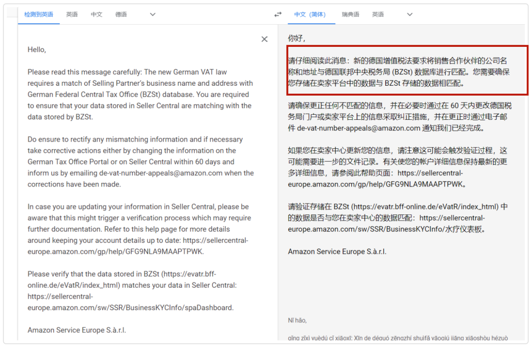 亚马逊在邮件中表示,新的德国增值税法要求,
