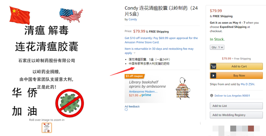 过去一周的时间,连花清瘟这个关键词,在亚马逊上升了16万名!