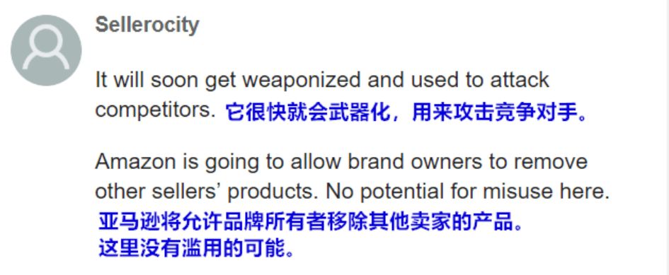 看起来亚马逊真的为打假下了决心啊,不过也有卖家担心,一旦这个功能被滥用,后果就怕是......(此处省略N个字,可看下图)