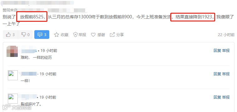 “放假前8525,今天直接降到1923,我傻眼了。”