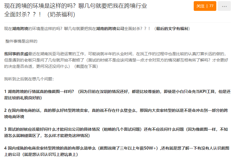 近日,有卖家在AMZ123卖家交流群中爆料某亚马逊公司的招聘信息,粗略一看该招聘内容并无太大不同,然而细看就能发现其中的门道: