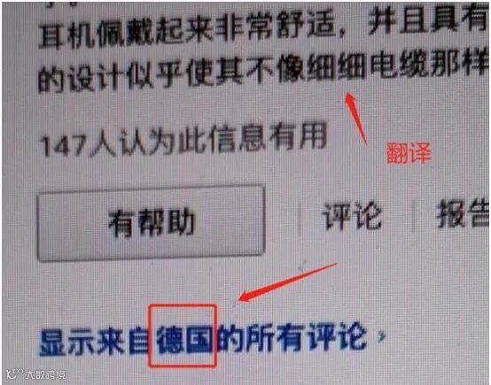 合并后,显示来源站点和不同语言review。如下图,显示不用国家的语言和国家名,review合并后,为了便于消费者阅读并参考,亚马逊增加了翻译功能。