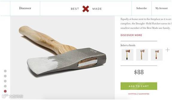 举一个例子, Best Made公司为其直立式斧头配了8幅图片,包括三个不同的角度,剩下的五张照片展示了由该斧头完成的五个成品。