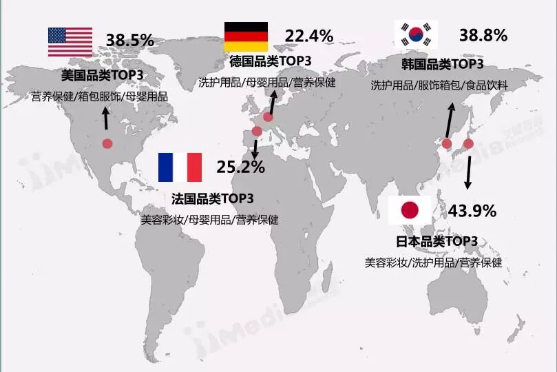 海淘用户倾向于海淘日韩欧美地区的商品,其中选择日本地区商品的用户比例高达43.9%。消费者在日韩地区海淘洗护用品较多,而在欧美地区海淘用户则倾向于购买营养保健品及母婴用品。