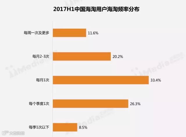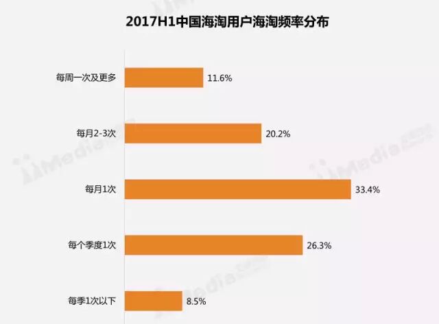 每月至少有一次海淘经历的用户高达65.2%,其中有11.6%的用户每周都有进行海淘消费。