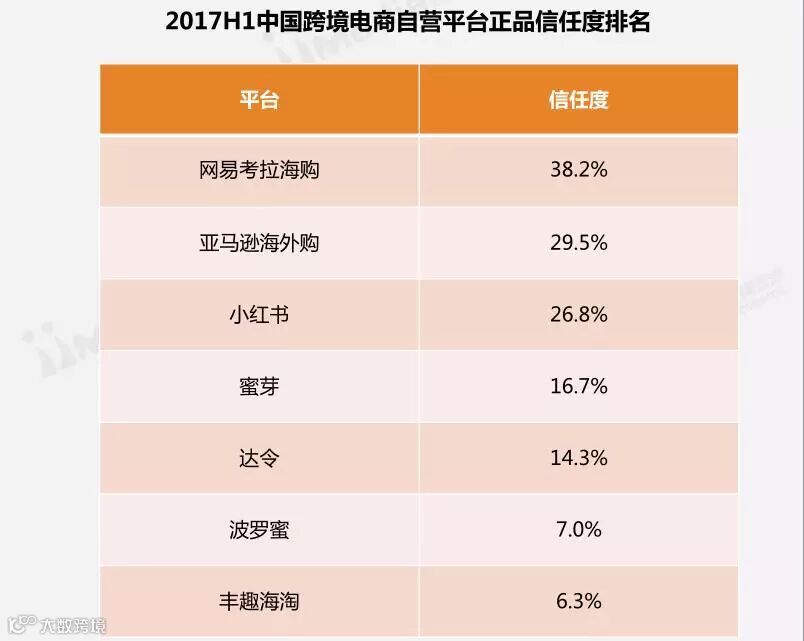 iiMedia Research(艾媒咨询)数据显示,38.2%的手机海淘用户认为网易考拉海购是商品正品保障最值得信赖的跨境电商自营平台,亚马逊海外购(29.5%)和小红书(26.8%)分列二三位。
