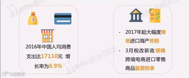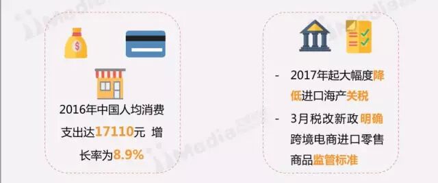 2017年上半年中国跨境电商整体发展环境向好:人们消费需求提升助推对外贸易特别是进口贸易持续繁荣;网购已经成为消费者重要的购物方式。