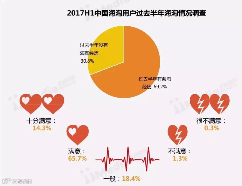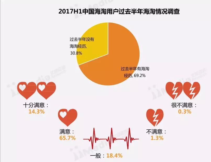 iMedia Research(艾媒咨询)数据显示,中国近七成海淘用户过去半年有过海淘经历,其中仅1.6%的消费者对近一年的海淘经历表示不满。