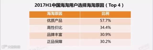 消费者海淘主要原因是对高质量商品的追求。海淘热卖品类如母婴类产品对商品质量的要求更高,加上2017年“3.15晚会”曝出日本核污染食品流入中国,跨境电商行业商品质量把控成为重点关注领域。