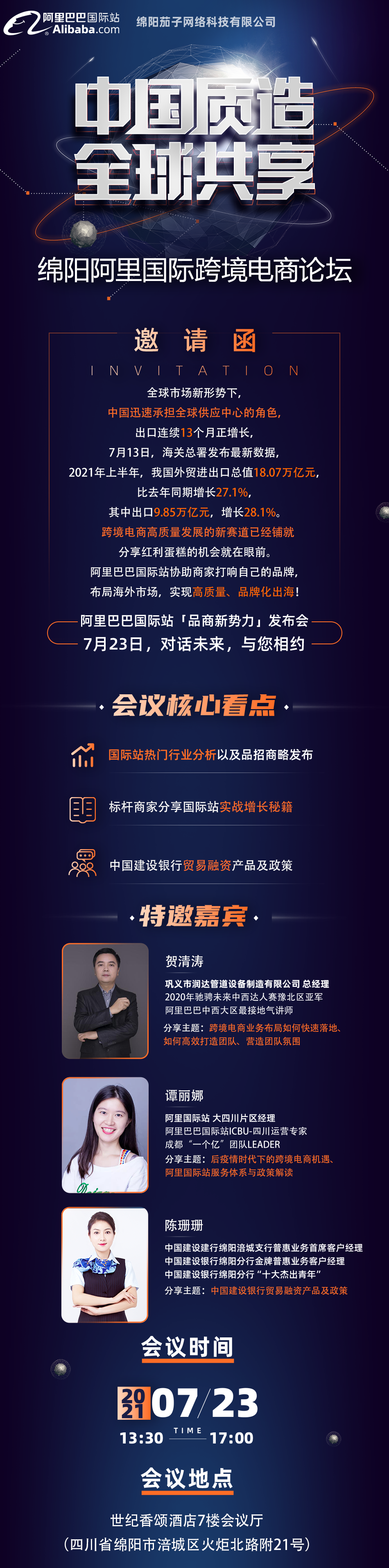 《绵阳阿里国际跨境电商论坛》 它来了!带来的是绵阳工业企业转型,传统外贸升级跨境电商终极解决方案!