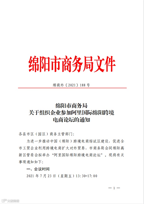 按照市委、市政府部署,为进一步推动中国(绵阳)跨境电商综合试验区建设,促进全市工贸企业开展对外贸易,市商务局与绵阳高新区管委会组织相关单位举办“阿里国际绵阳跨境电商论坛”。