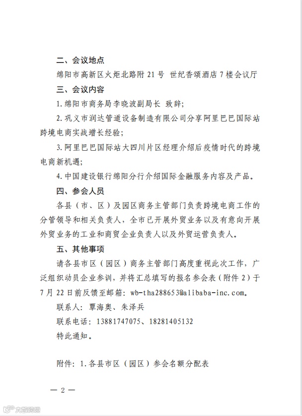 跨境电商作为当下进出口最具优势行业,发展前景非常广阔。2020年国务院批复绵阳建设跨境电商综试区,大力推动绵阳本地产业开拓国际市场。绵阳既有电子信息、新材料和汽车及零部件优势产业,也有本地特色文化和农产品。绵阳地区跨境电商土壤肥沃,时机成熟。阿里巴巴国际站作为全球领先的最大B2B电子商务贸易平台,坚持帮助中小企业拓展国际贸易的出口营销推广服务,通过向海外买家展示、推广供应商的企业和产品,进而获得贸易商机和订单。为更好服务于绵阳地区各类企业,促进绵阳地区跨境贸易健康可持续发展,为绵阳商圈崛起做出积极贡献。
