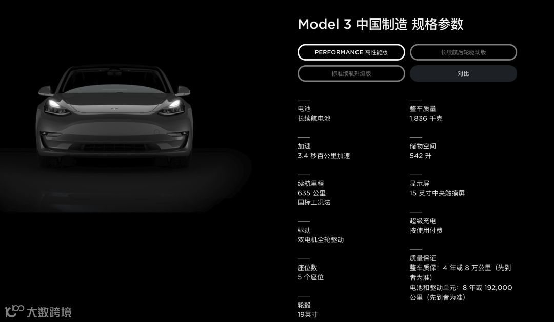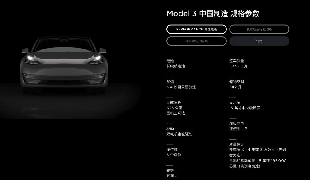 36氪获悉,6月29日晚,特斯拉在官网发布了Model 3高性能全轮驱动版车辆的国标工况续航里程,续航里程测试结果为635km,百公里加速时间为3.4秒。
