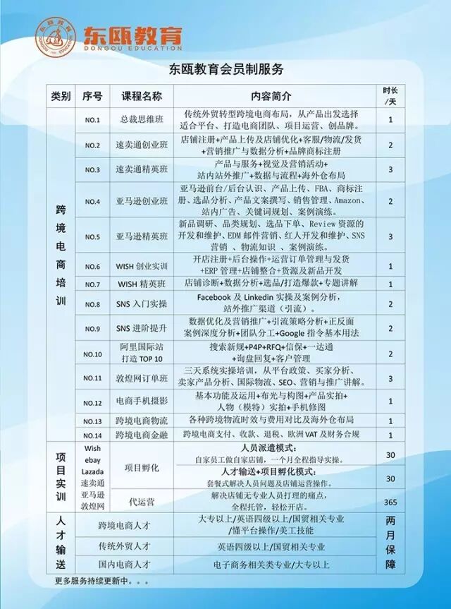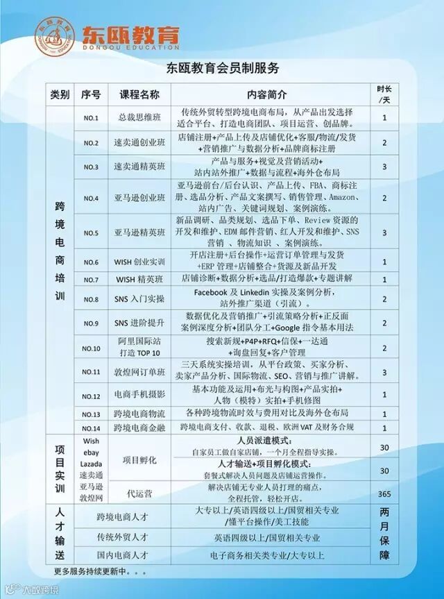 东瓯教育2017重磅推出会员制学习卡,持卡可享受跨境电商培训、人才输送、创业孵化及跨境相关服务。一卡在手,尽享所有服务VIP折扣!