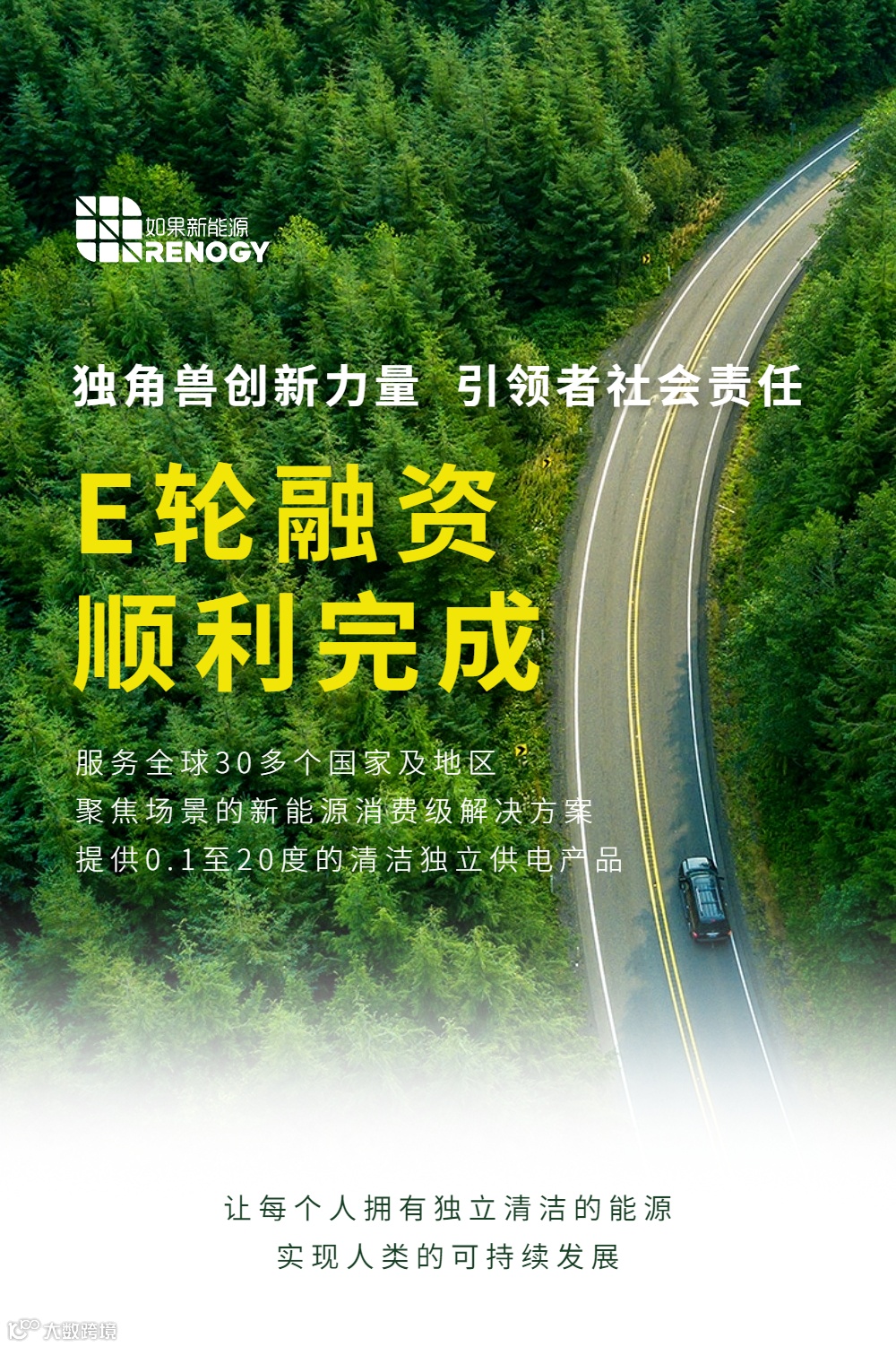 RENOGY如果新能源,作为全球能源消费端应用场景中的行业开拓及领先者,及新能源行业独角兽企业之一,近日完成数亿元E轮融资,由前海母基金领投。
