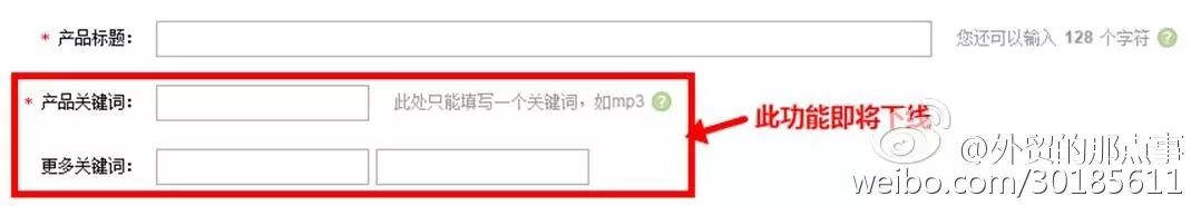 为了提升商品的信息描述质量,使买家找到更优质的产品,使卖家朋友在发布产品时更关注于商品整体信息的描述上,所以平台将于北京时间2015年10月13日左右,对产品发布里的“产品关键词”填写功能进行下线。