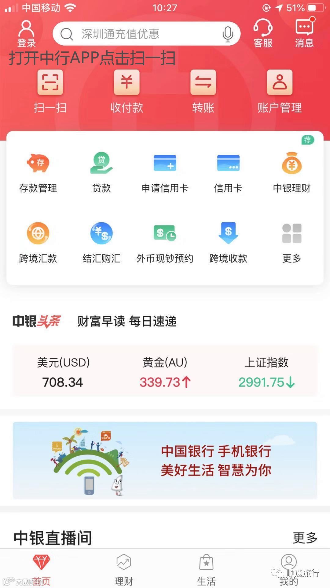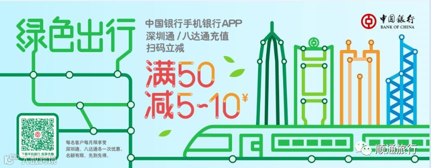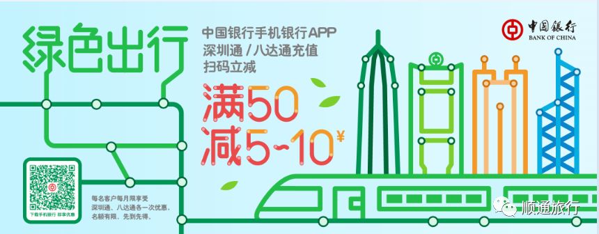 现在小编告诉您好消息:从即日起在深圳银联易办事交通卡自助充值终端通过中行手机银行app可享受充值满50立减5-10元的优惠(每月一次,深圳通与八达通各享受一次),数量有限,先到先得!