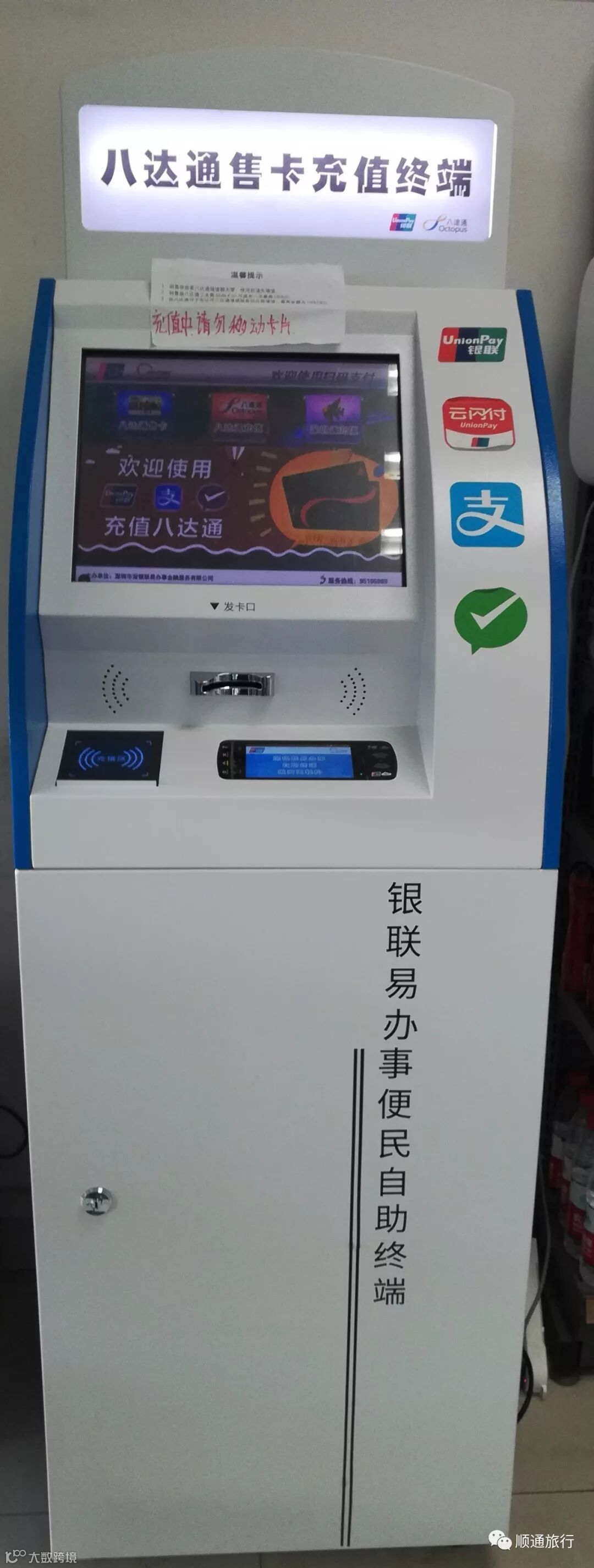 深圳顺通国际旅行社罗湖口岸&福田口岸&皇岗口岸&深圳湾口岸四大分店均设有深圳银联易办事交通卡自助充值终端机,门店小哥哥小姐姐
