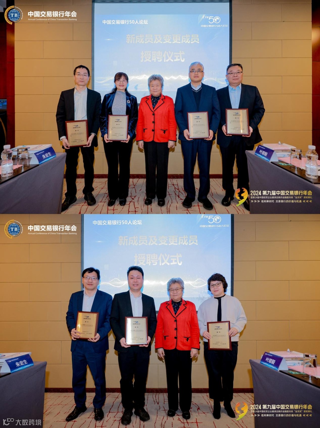 随后,进入到授牌环节,2024年多位论坛成员在职业生涯中取得了新的突破,走上了更重要的岗位。其中包括中国银行上海分行行长王晓、中国工商银行个人金融部总经理陈昭旭、中国建设银行纽约分行行长孙剑波等多位行业领军人物。同时,经过全体理事的投票表决通过了杭州银行交易银行部总经理叶璟毅和江苏银行交易银行部负责人王云峰成为论坛的新成员。