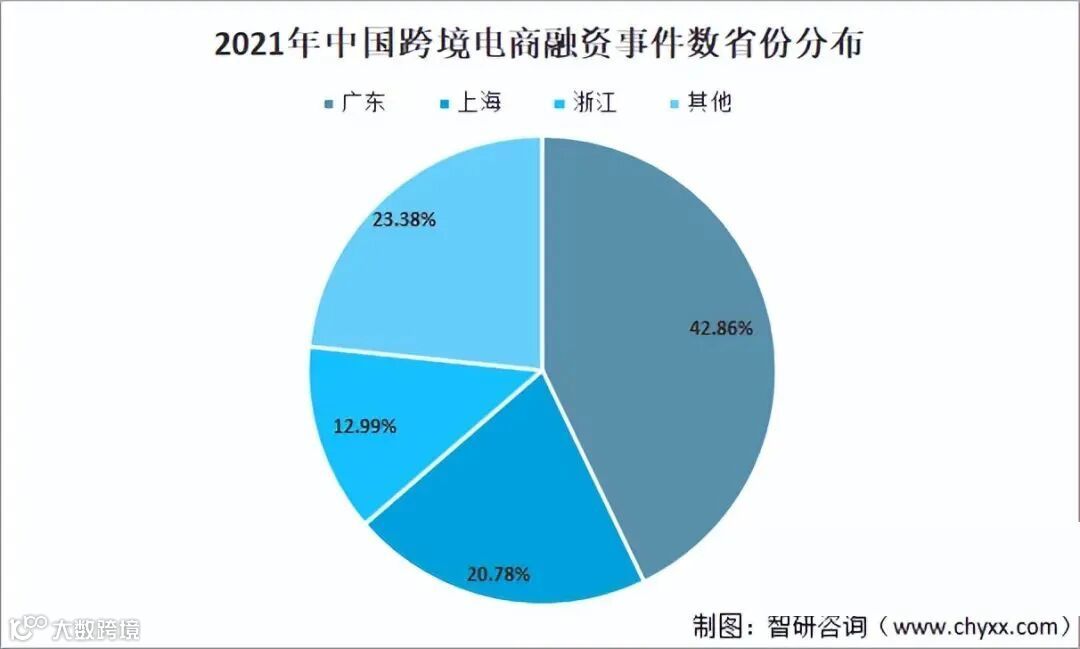 跨境电商融资事件数省份分布上,大部分集中在长三角、珠三角经济发达地区。