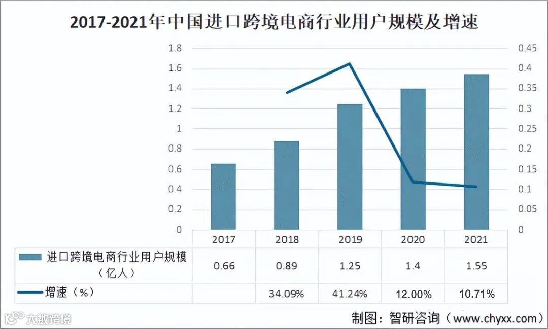 2017-2021年中国进口跨境电商行业用户规模及增速
