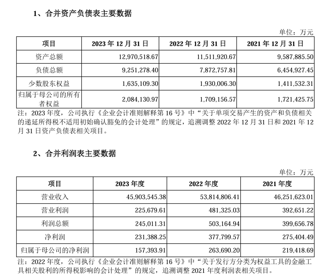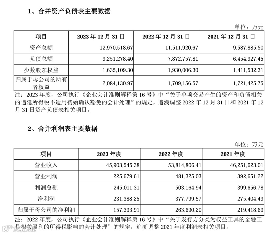2021、2022、2023年,厦门象屿主要财务指标见下图: